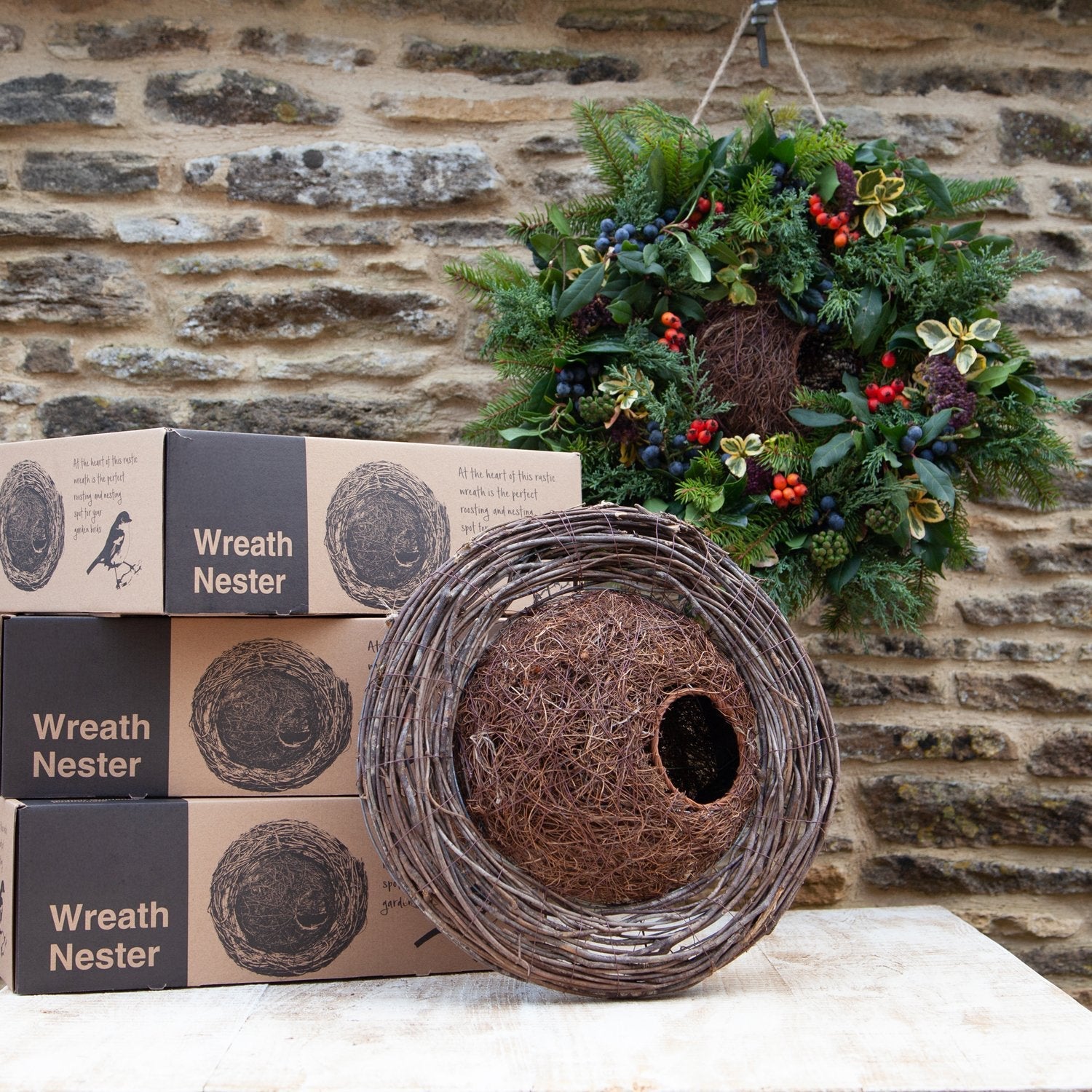 Introducing the Wreath Nester. We've gained many years of knowledge observing and photographing wildlife. This Wreath Nester is a fantastic addition to any garden.